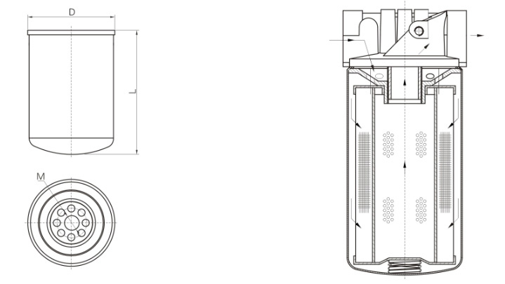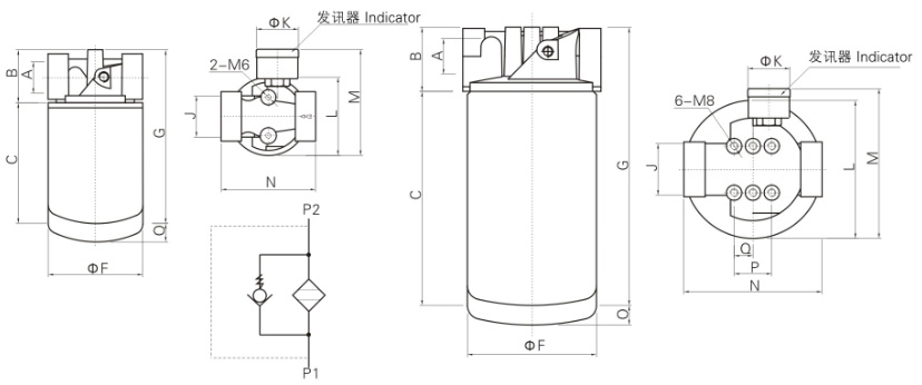 4、濾頭上設(shè)有安裝污染堵塞發(fā)訊器孔,以便檢測(cè)濾芯使用情況