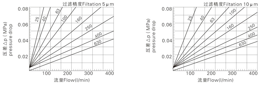 該過濾器濾芯采用新型化纖過濾材質,具有過濾精度高、通油能力大、原始壓力損失小、納污量大等優點,其過濾精度以絕對過濾精度標定,過濾比β3、5、10、20>100,過濾效率n≥99%,符合ISO標準。
