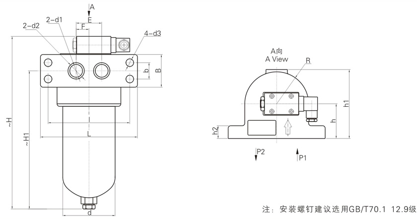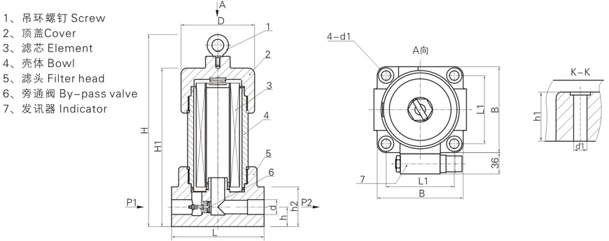 該過濾器設有壓差發訊裝置,當濾芯污染堵塞到進出油口壓差為0.35Mpa時,即發出開關信號,此時更換濾芯,以達到保護系統安全的目的。
