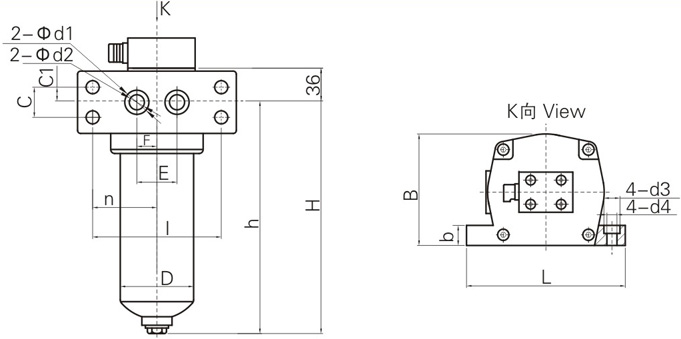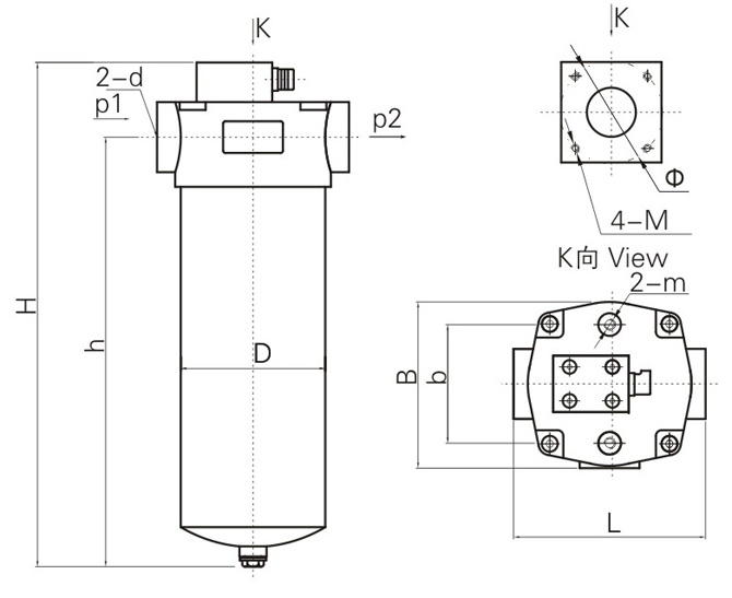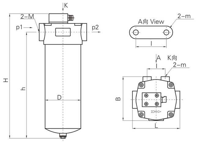 該過濾器裝有壓差發(fā)訊裝置,當濾芯因污染堵塞致使進出油口壓差達0.35MPa時,便發(fā)出開關(guān)信號,此時應(yīng)清洗或更換濾芯。