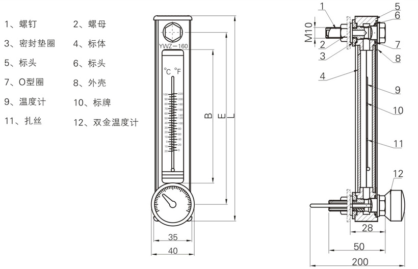 CYW-76~500系列傳感式液位液溫計是我廠在批量生產YWZ-76~500系列的基礎上,參考國外先進技術資料開發的一種新產品。它是利用雙金屬片熱脹冷縮靈敏度相當高的特點來測量油液的溫度。這樣儀表具有準確度,讀數容易,堅固耐震等特點,可廣泛應用于各種油箱、潤滑裝置、冷卻和齒輪傳動箱中的液位液溫測量。